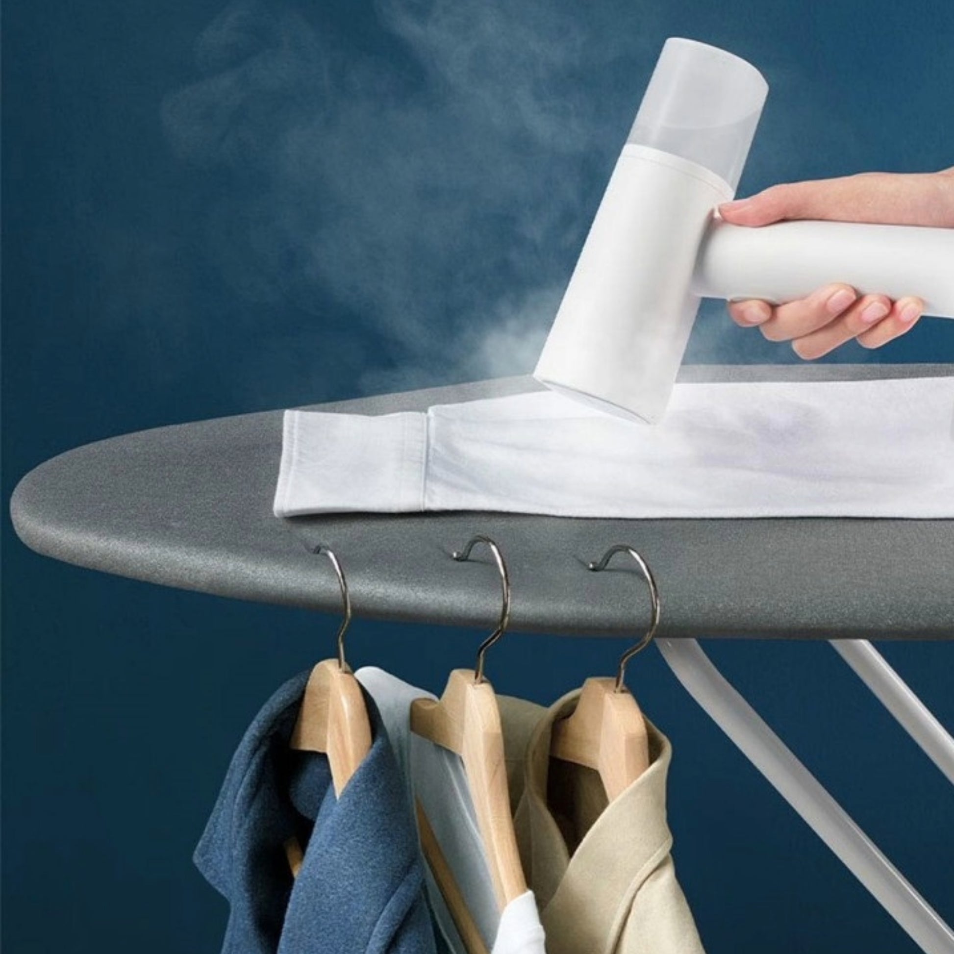 Sa double tête permet une utilisation verticale ou horizontale, idéale pour tous les types de vêtements.