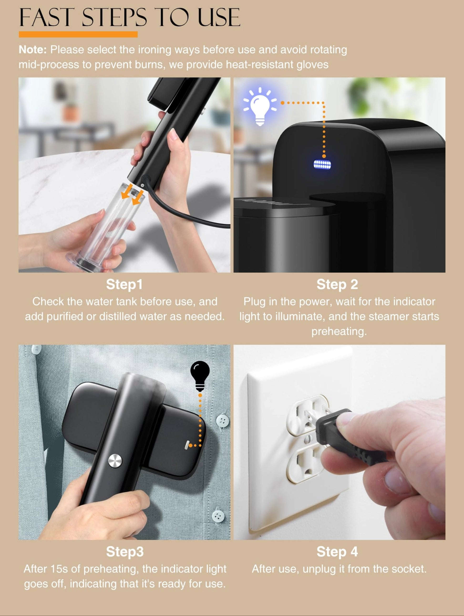 - Défroissage rapide en 18 secondes, idéal pour les matins pressés.
